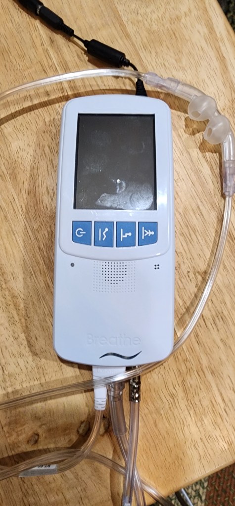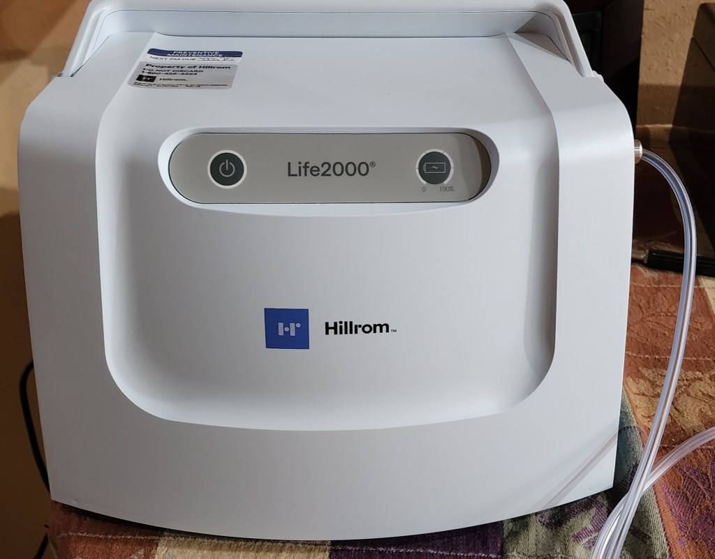 A HUGE positive to all of this…He now has his Life2000 which is a portable noninvasive ventilator!! Woo hoo!! We keep the compressor near the middle of the house which is attached to a 50 ft hose. This allows him to walk most everywhere downstairs being able to breathe. He says this has been a game changer. He is not as tired from struggling to breathe by the end of the day. I knew when he walked, he struggled but honestly had no idea he was also struggling to breathe just sitting. We received the oxygen tanks today which will allow him to take this with him when we go out in public. Such excitement!! π