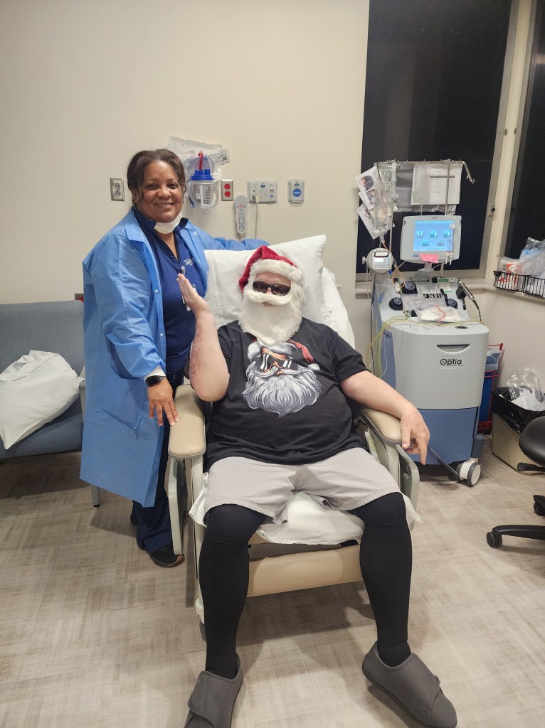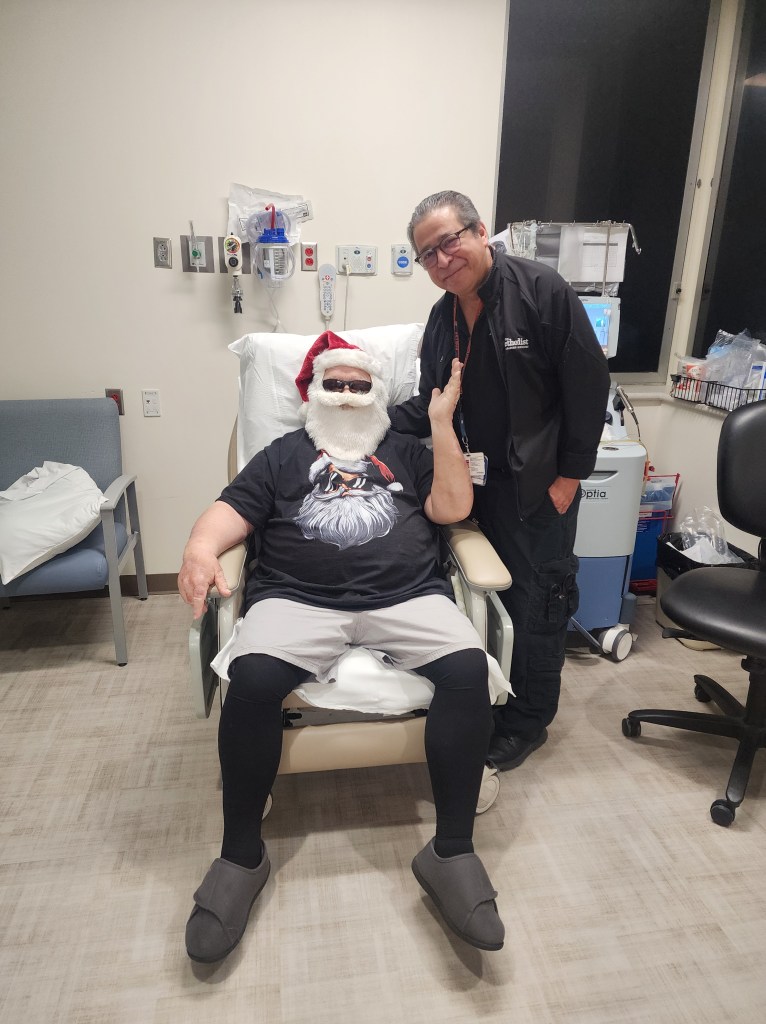 He still has his humor and love for attention. Today he wore his Santa shirt and Santa face mask to his plasma treatment. 🎅 I LOVED seeing people he passed get a BIG smile and say, “Hi Santa”. He would tell them, “I’ve been watching you!” 👀 😂 One doctor told us it’s refreshing to see his positive attitude when dealing with MG. 💕
